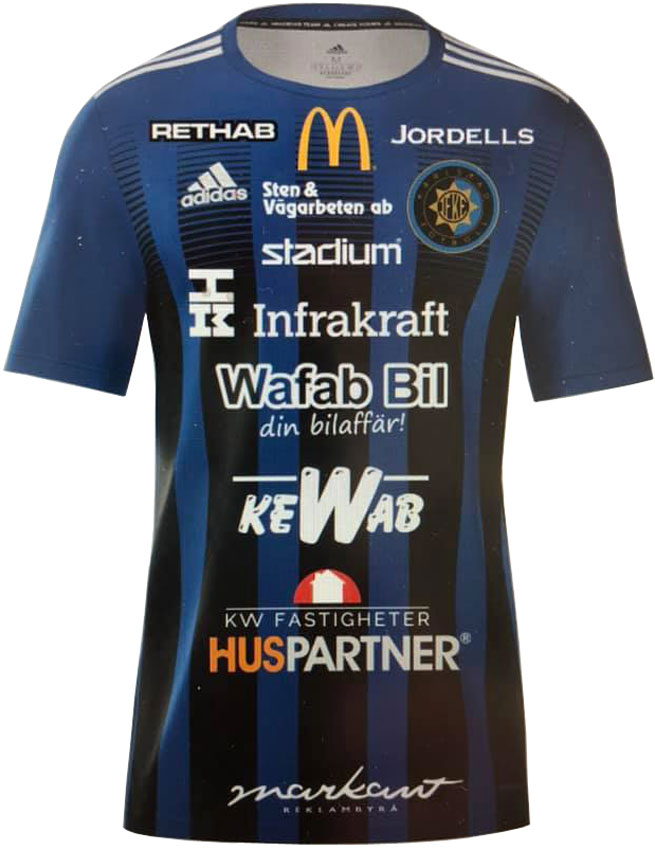 母体となる前身クラブは昨季4部リーグを優勝し、カールスタードは今季3部に昇格。その新クラブで昇格シーズンを戦うユニフォームがこれだ。最後にこの多過ぎなスポンサーロゴを数えてみた。