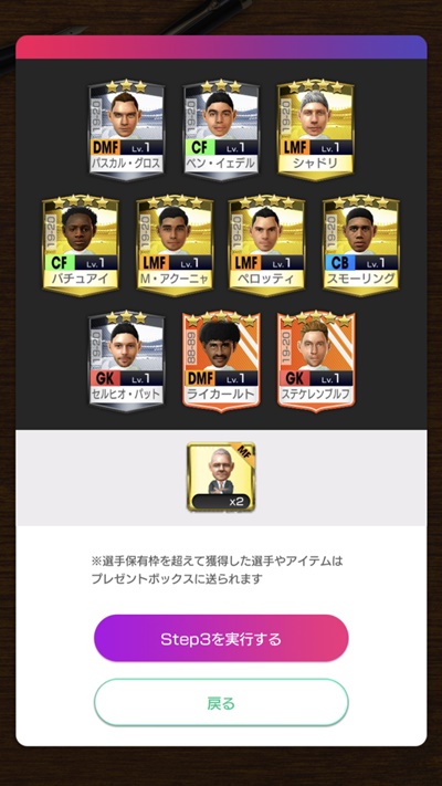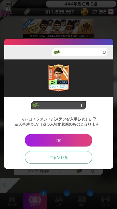 今回のガチャは10回をまわすと、最後に1人だけ好きな選手を選ぶことができる。ここで残りのファン・バステンを選択し、“オランダ・トリオ”が揃うことになった。