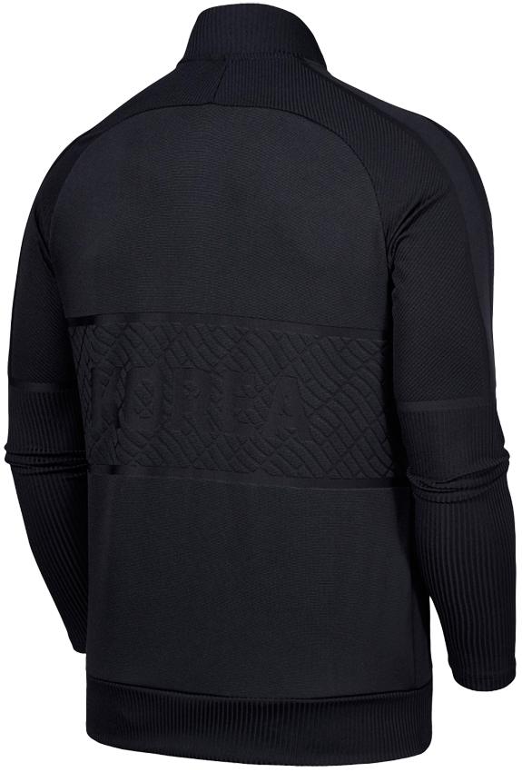 選手がピッチ入場の際などに着用するアンセムジャケット。胸部分には国旗にインスパイアされたウェーブ状のデザイン。背面には“KOREA”をエンボス調にプリントする。袖部分のユニークなデザインも注目に値する一着。