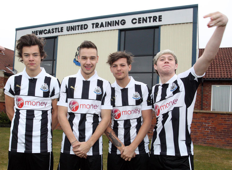 世界的人気のボーカルグループ、ワン・ダイレクション(1D)は2014年、ニューカッスル・ユナイテッドのクラブハウスを訪れてユニ姿に。ちなみに1Dは他のチームのユニフォーム姿も披露しているので、とくにニューカッスルのファンというわけではない模様。