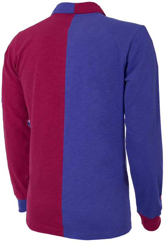 クラブの初代ユニフォームを再現した一着。“ブラウグラナ(臙脂と青)”が半々のデザインは、後に100周年記念モデルで再び登場となる。左胸にはバルセロナ市の紋章を模ったエンブレムを付けていたという。