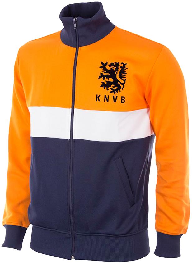 こちらは83年当時のトラックトップを再現した復刻デザイン。オレンジ、ホワイト、ネイビーの3色をバランスよく配し、落ち着きある一着となっている。