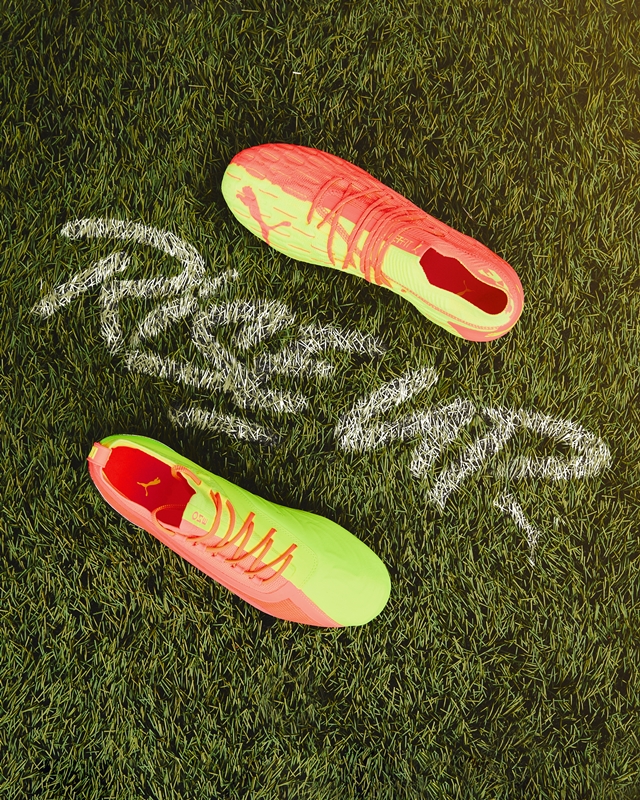 エナジーピーチとフィジーイエローの大胆なカラーリングは、ピッチ上で火花を散らすような“スパーク”を巻き起こすプレイヤーたちの輝きを称えている。