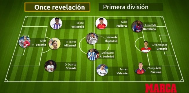 2つのベストイレブンには久保以外にもレアル・マドリーMFフェデ・バルベルデ、バルセロナFWアンス・ファティ、レアル・ソシエダMFマルティン・ウーデゴールらが名を連ねている。