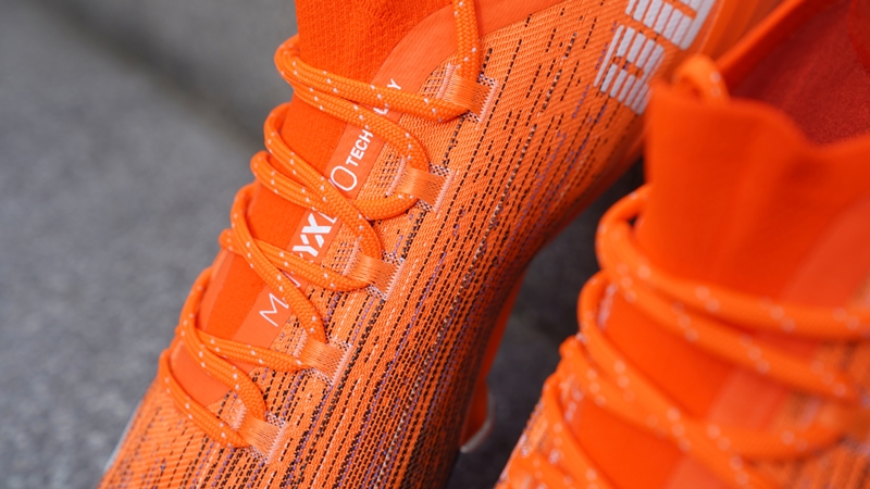 カーボン繊維で構成された軽量のMATRYXEVO(マトリックスエボ)アッパーを搭載したダイナミックなシルエットと、直感的な動きをサポートするアウトソールを組み合わせ、果てしなくスピードを追求するPumaのDNAを受け継いだ究極の一足となっている。