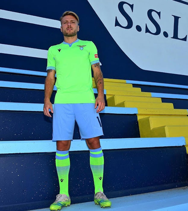 新アウェイユニフォームは蛍光グリーンを基調にブルーという、かなり意外な色の組み合わせとなった。背面首元にはチーム名“SS LAZIO”をレタリングする。