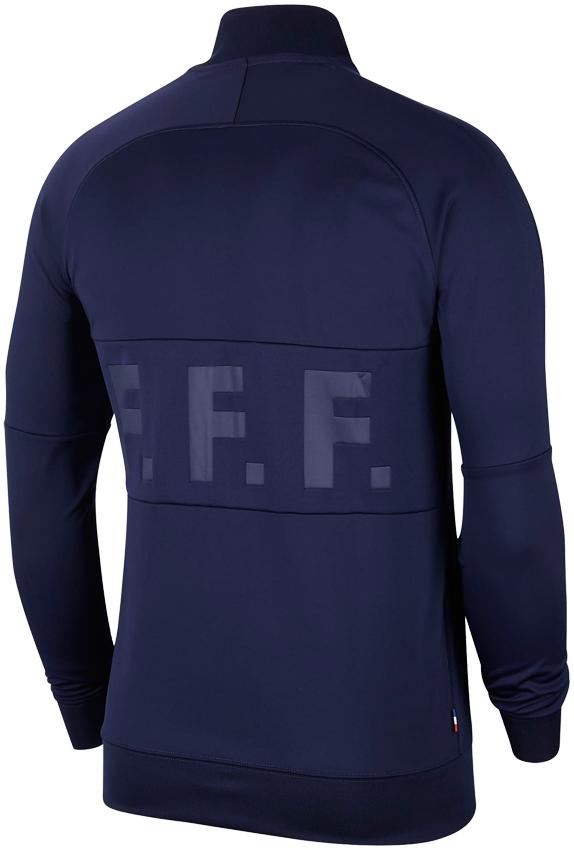 選手がトレーニング時に着用するジャケット。その他、移動やメディア対応の際などに使われることもある。背面の“F.F.F.(フランスサッカー連盟の略称)”の透かしプリントが特徴的。