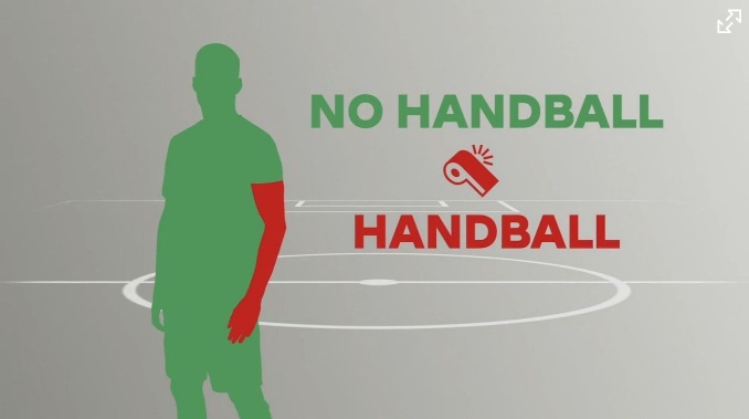 競技規則にあるオフサイドのルールでは「ゴールキーパーを含むすべての競技者の手および腕は含まれない」とされているはず。ただ、ハンドについてのルールが変更になり、肩・上腕付近での得点が認められることになったため、その部分はオフサイドになりえるとのこと。