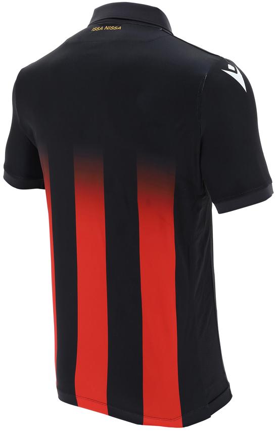 近年はデザイン格好良いと好評なニースのホームユニフォーム。20-21モデルは胸から下にレッドとブラックのストライプを配する。