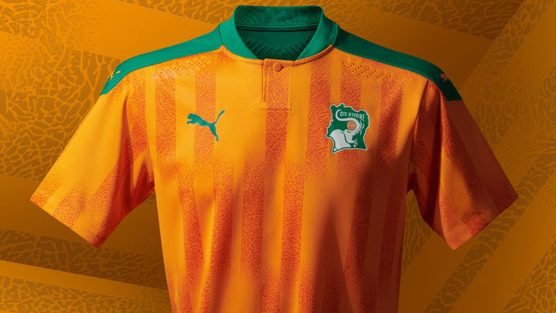 コートジボワールは、チームの愛称“Les Éléphants(象)”に触発されたデザイン。グラフィックは象の皮膚を表現している。