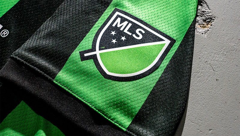各チームのキットカラーに合わせて色が異なるMLSリーグバッジ。オースティンはチームカラーのグリーンをメインカラーとする。