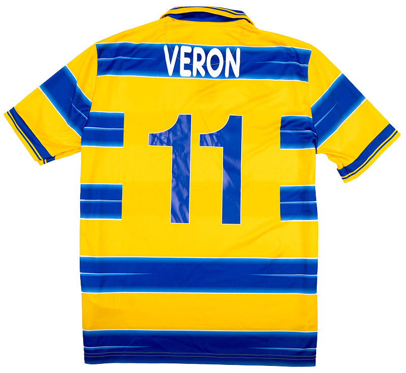クラブ公式オンラインショップでは好きな名前と背番号に対応。当時の主力だったフアン・セバスティアン・ベロンのネームナンバーもご覧の通りで、当時のフォントデザインにかなり近い。