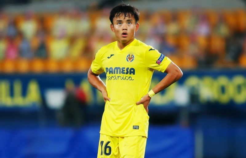 ビジャレアルに所属する日本代表MF。左手にユニフォームに合わせた色のテーピング(しないこともある)。