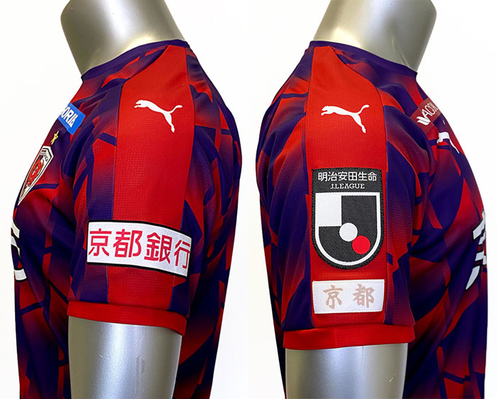 2021年引き続き、右袖のJリーグバッジ下にホームタウンの「京都」を配する。