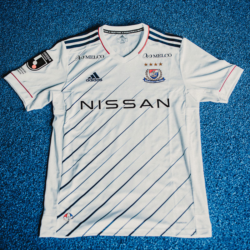 アウェイユニフォームは、選手がピッチをダイアゴナル(斜め)に走るプレースタイルを表現。同時に、ホームタウンの象徴「ベイブリッジ」の斜張を想起させ、街の人々に愛着を感じてほしいという想いを込めている。