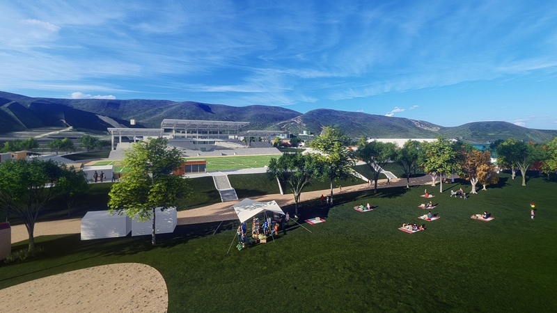 【里山スタジアム】は、365日の賑わいを創出する仕掛けをふんだんに盛り込みました。サッカーの試合日は、お祭りのようなワクワク感を演出する「里山」空間に加えて、臨場感あるピッチに近い観戦環境、VIPルームや多様な観戦環境を生み出す「里山ボックス」、スマートテクノロジーの導入など、試合をより楽しんでいただける最先端のサッカースタジアムとします。また、試合のない日も訪れる人々が関わり合いながらゆっくりと憩え、様々なアクティビティも体験できる開かれたスタジアムを目指しています。訪れる季節や時間ごとに違った風景を見せる「里山」空間は地域の皆様と共に創り上げていきながら、常に進化し続けます。地域や自然環境との連携や循環の中で成長し続ける<里山スタジアム>は、今後、何世代にもわたって愛され、まちのシンボルとなっていくことを目指します。