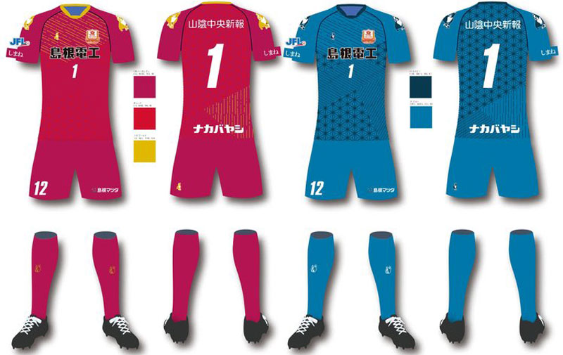 フィールドプレーヤー用は組子柄の他に、国宝「松江城」と嫁が島、宍道湖、水都松江の美しい風景をデザイン。アウェイのベースカラーには「水都松江の霞」をイメージしたシルバーを採用している。