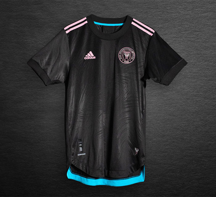 ユニフォームは基本的にブラックとピンクのモノクローム。中央に日食(エクリプス)を挟む形で2羽の白鷲を描く。その下のMMXXはローマ数字でMLS参入年の2020年を意味する。