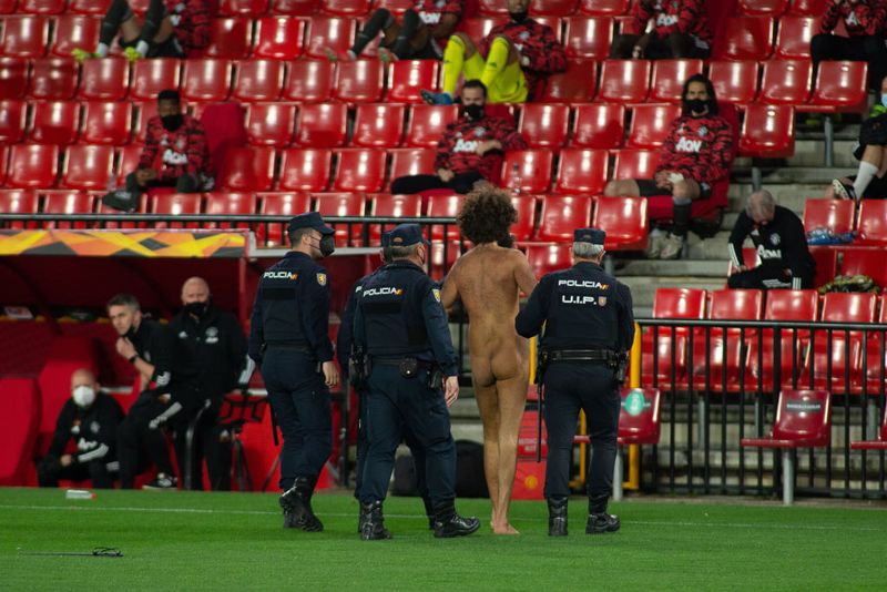全裸で公共の場所を歩き回ったり、街の有名な場所で自分の写真を撮影したりして、世界平和への願望を表しているとのことだ。確かにグラナダとマンチェスター・ユナイテッドの戦いも5分間中断を余儀なくされている。