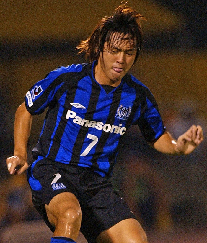 現在では青黒ストライプや、それをアレンジしたデザインが定着しているガンバ大阪。だがストライプの使用は1997年からで、それ以前は青を基調に黒の差し色というスタイルだった。