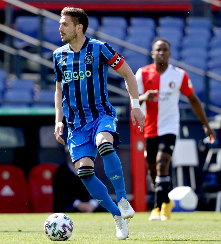 この新アウェイユニフォームは9日の“デ・クラシケル”、フェイエノールト戦でお披露目に。パンツはホームチームと色が被るため、ブルーを着用した。
