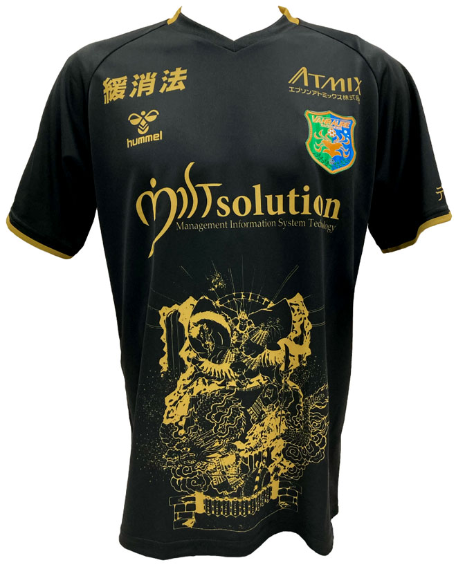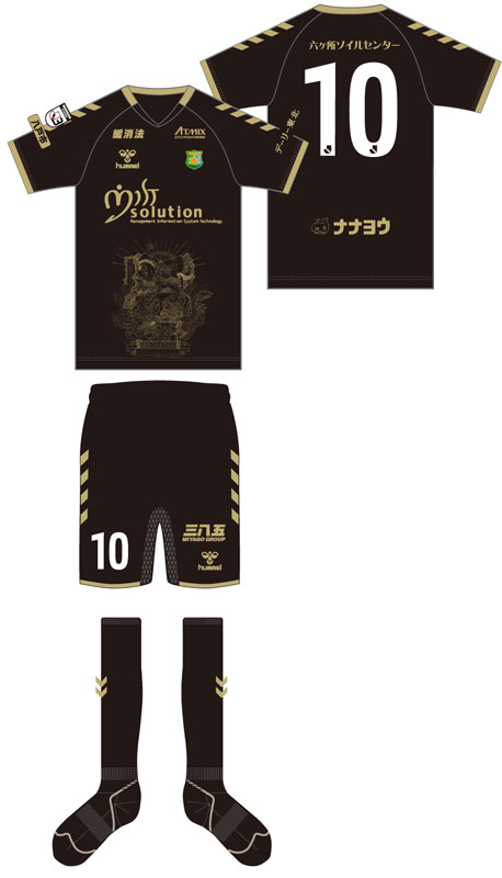 クラブ初のサードユニフォームとなるこのキットは、300年の歴史と伝統を誇り、ユネスコ無形文化遺産にも登録された「八戸三社大祭」がモチーフ。後光が差した武将が、八戸の街を守る龍神とともに戦う様を描いている。