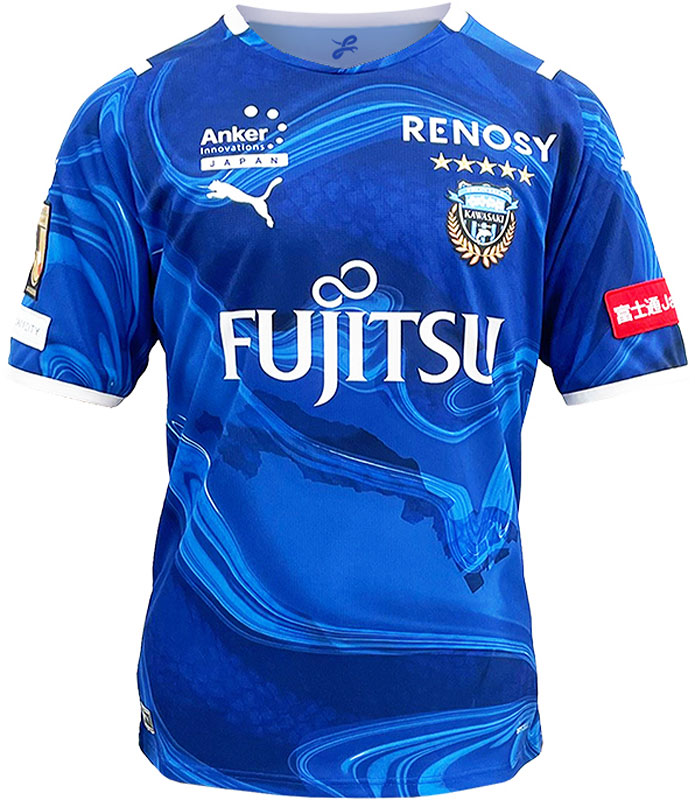Pumaのグローバルデザインコンセプト“CRAFTED FROM CULTURE”に基づき、川崎市の歴史からインスピレーションを受けたデザイン。今シーズンのリミテッドユニフォームは、川崎の水道給水開始100周年を祝したものとなっている