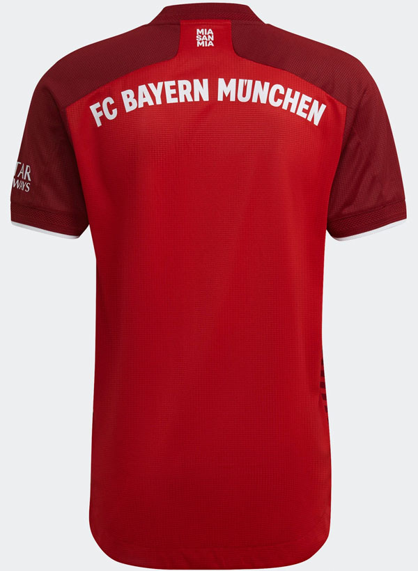 背面の首元には、スタイルを一新したクラブのモットー“Mia San Mia(俺たちは俺たち)”をレタリング。