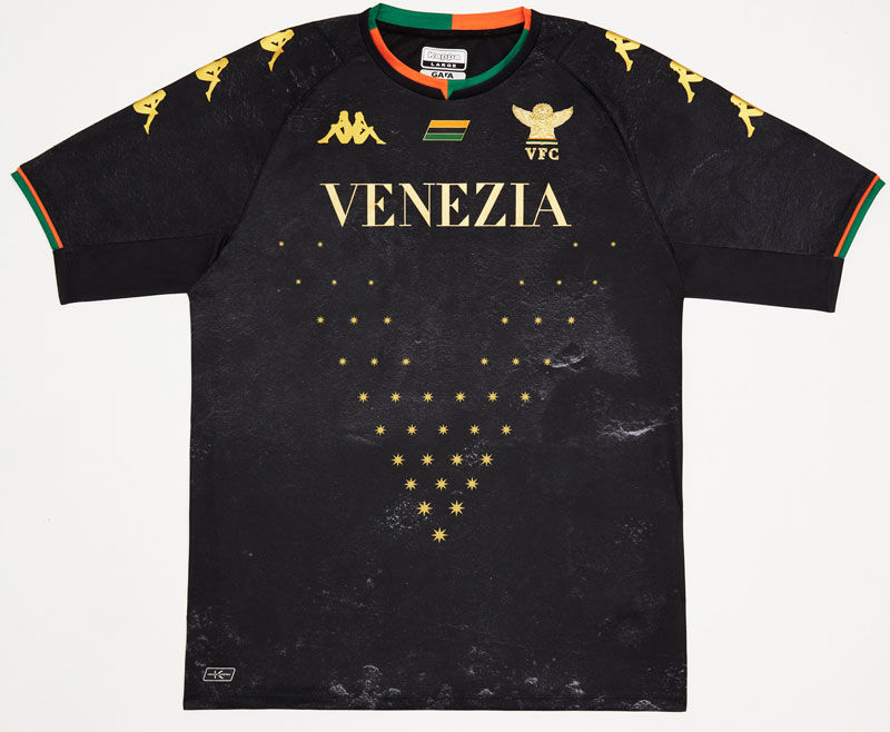 20年ぶりのセリエAを戦うヴェネツィア。この新ユニフォームからKappaがキットサプライヤーを務める。そのデザインはかなり独特で美しいものに。