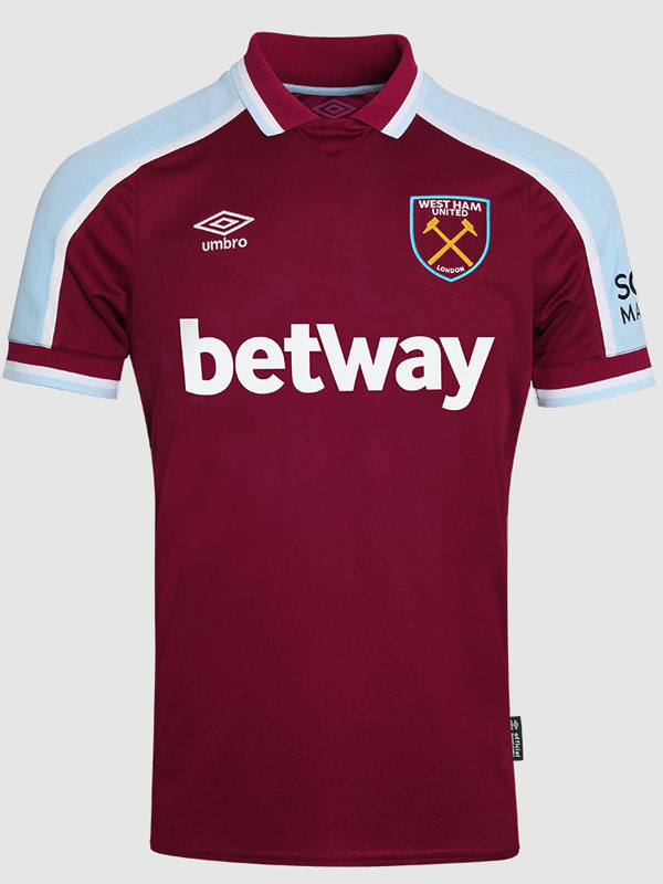 新ホームユニフォームはウェストハムの伝統的な色とデザイン。クラレットと呼ばれるレッドをベースに、スカイブルーを組み合せる。
