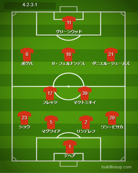 マーカス・ラッシュフォードらが欠場。ネマニャ・マティッチとアントニ・マルシャル、ジェイドン・サンチョが途中出場。ドニー・ファンデベークやフアン・マタらはベンチ。