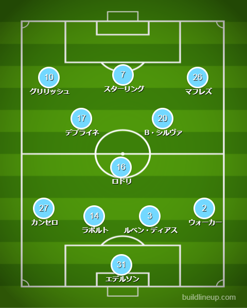 なお、前半終盤にはケヴィン・デブライネとベルナルド・シウヴァのポジションが入れ替える場面も。