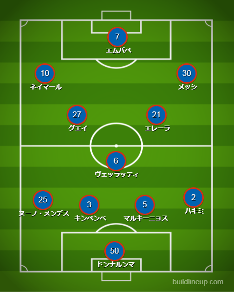 パルク・デ・プランスで激突した両チームのフォーメーションがこちら。