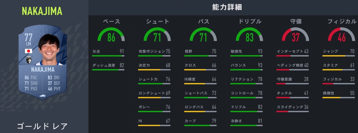 今回の代表招集から漏れた主な日本人海外組の能力を調べてみた(アルティメットモード上での数値)。