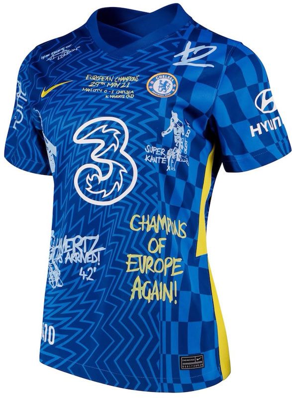 ハヴァーツのゴールパフォーマンスなど、歓喜の瞬間を再び体感することができるデザイン。20-21シーズンのCL優勝により、チェルシーはロンドン勢で唯一となる2度目の欧州制覇チームとなった。