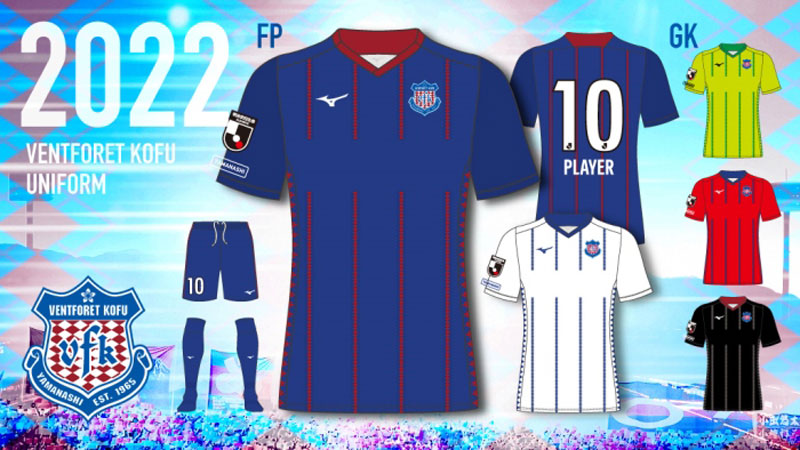 ヴァンフォーレ甲府とキットサプライヤーのMizunoは5日、2022シーズンの新ユニフォームを発表した。
