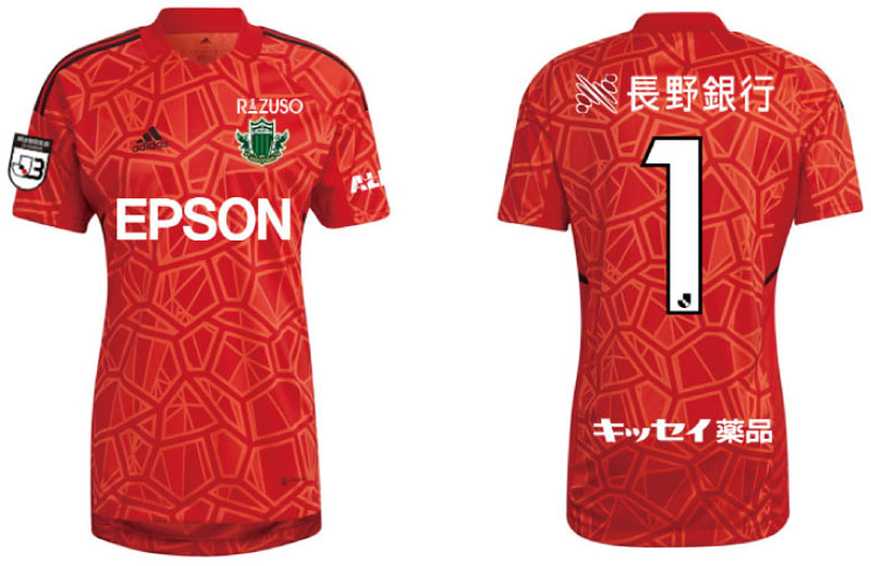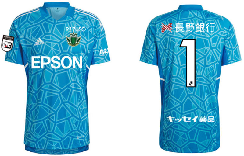ゴールキーパーユニフォームは2色展開で、1stはブルー、2ndはレッドに。どちらもゴールネットからインスパイアされたデザインを採用する。
