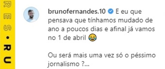『Record』によれば、ブルーノは「数日前に年が変わったと思ったら、もう4月1日になっていた。それとも、また悪いジャーナリズムなの?」と書き込んでいたとか。