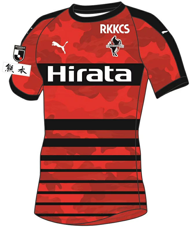 熊本は2021年の明治安田生命J3リーグを優勝し、J2への昇格が決定。2022シーズンはこのユニフォームを着て4年ぶりのJ2を戦う。
