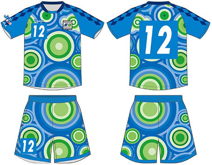 2022新ユニフォームは円状のグラフィックが強烈なインパクトを放つデザイン。伊勢湾のブルーと鈴鹿の山々を表すグリーンをベースに、波紋のような「えん=円」をあしらい、F1の聖地・鈴鹿市のアイデンティティでもあるチェック柄を採用している。