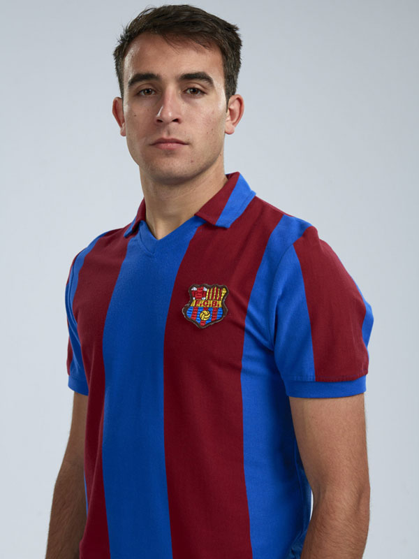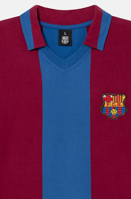 80-81シーズンに着用したユニフォームの復刻デザイン。エンブレムの“F.C.B.”は赤文字を使った旧スタイル。