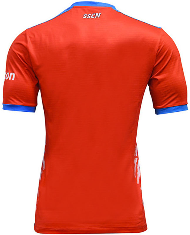 マラドーナ記念ユニフォームの第4弾は今季のフォースキットと同じで、ナポリの伝統的な色のレッドを採用。クラブのレジェンドであるマラドーナ氏の「顔と指紋」を独特のタッチで描く。