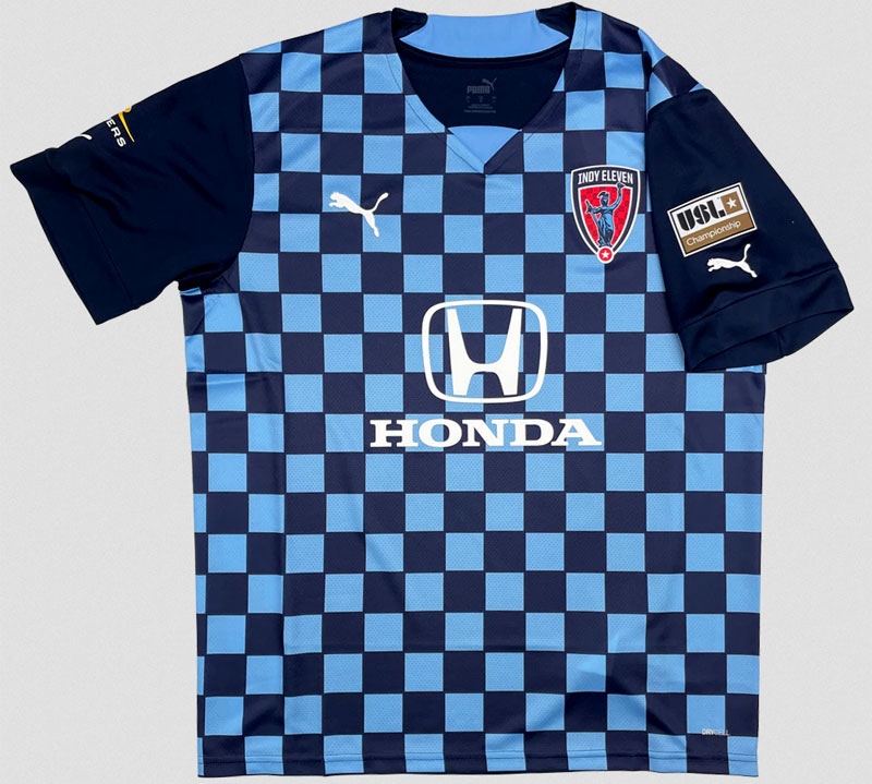 インディ・イレブンは自動車との縁が深い街のチーム。カーレースなどで使用するチェッカーフラッグのようなデザインと胸の「HONDA」は、モータースポーツファンの琴線に触れるような組み合わせだ。