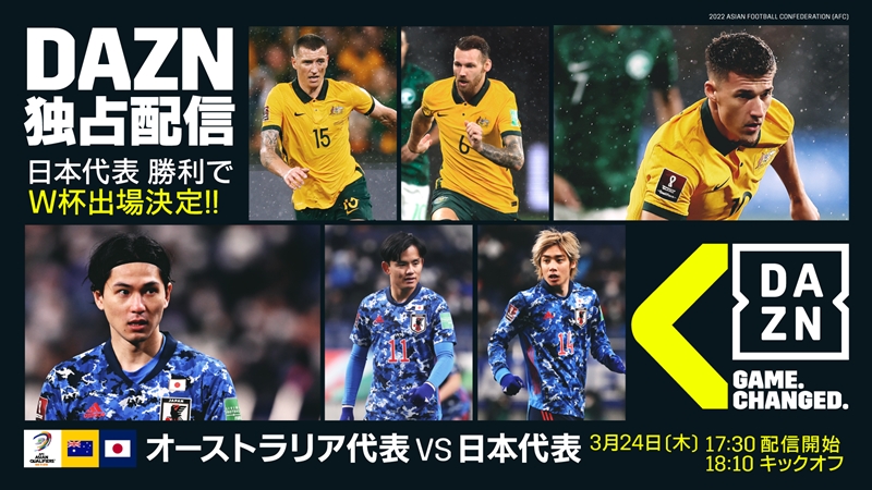 3月24日(木)AFCアジア予選– Road to Qatar –第9戦 オーストラリア vs 日本(DAZN独占配信)