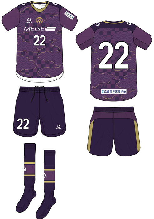 シャツ、パンツ、ソックスは京紫(きょうむらさき)を想起させる全身パープル。新ユニフォームも引き続きbonera(ボネーラ)がサプライヤーを担当する。