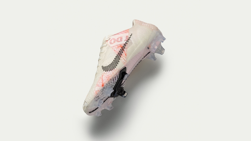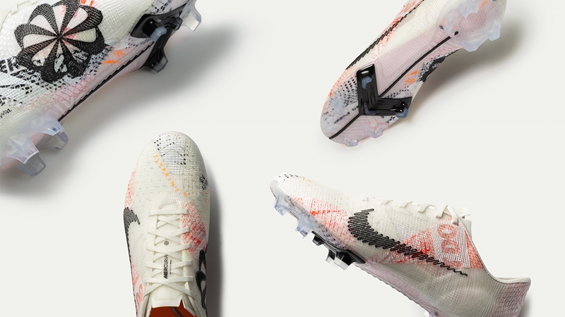 『マーキュリアル ヴェイパー ネクスト ネイチャー』にはランニング以外のNikeシューズで初めてフライプリントを採用。スパイクのスキン(皮膜)にフライプリントを使用することで、デザイナーが精密に指定した量の素材を使った3Dプリントを施すことが可能になった。