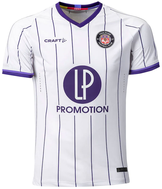 トゥールーズのホームユニフォームはパープル(ヴァイオレット)が定番だが、22-23新ホームのメインカラーにはホワイトを採用。驚きのホームキット登場となった。