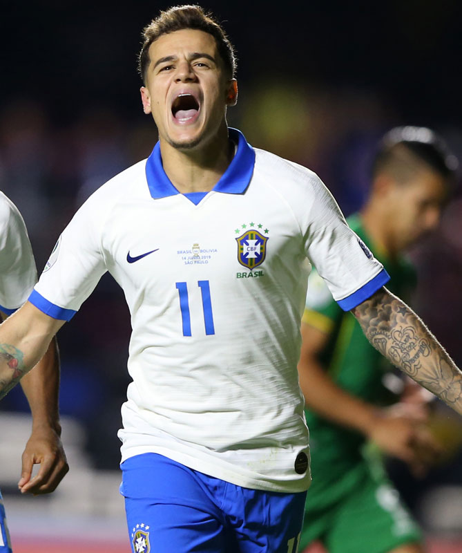 2019年のコパ・アメリカに向けて投入したサードユニフォーム。ホワイトを基調にブルーの差し色がクラシックだが、これは1919年のコパ・アメリカ初優勝から100周年を記念したもの。ブルーの襟は初優勝当時のユニフォームに付いていたものだ。