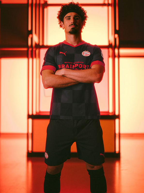 21-22シーズンのエールディビジは優勝したアヤックスに勝ち点2ポイント差の2位でフィニッシュしたPSV。クラブ史上初となる“ダークカラーのみの格子柄ユニ”で、5シーズンぶりのタイトル奪還を狙う。