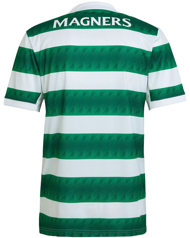 基本デザインは鉄板のフープス(ボーダー)で、グリーンの部分にはダイヤモンドパターンを落とし込む。このスタイルは1987-89、1997-99の両シーズンで使用したふたつのユニフォームにインスパイアされたもの。